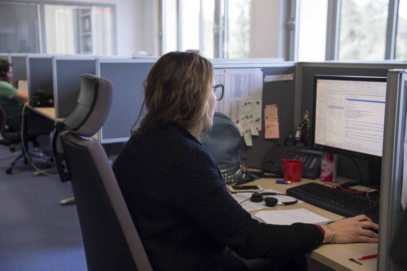 Οι καρέκλες που χρησιμοποιούν οι λειτουργοί είναι εργονομικές λόγω της καθιστικής εργασίας