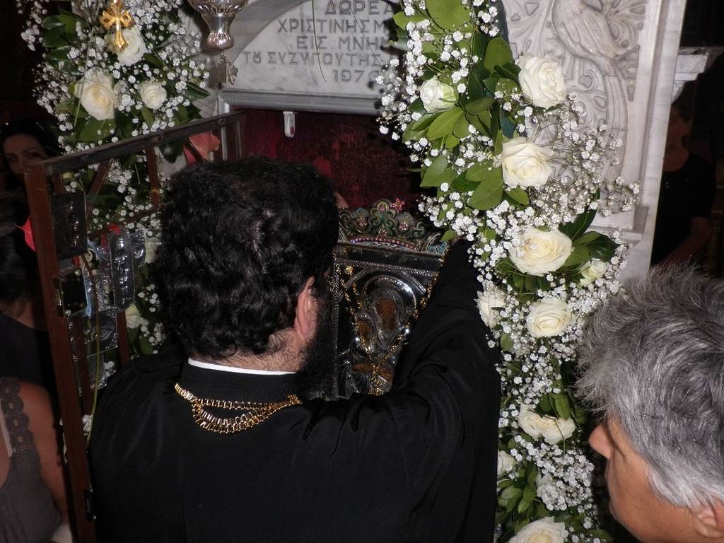 Μαζί με τα φαγητά που ετοιμάζονταν για μέρες στα σπίτια των χωριών, οι γυναίκες έπαιρναν μαζί τους και τα καλύτερα στρωσίδια τους και ξεκινήσουν για την Μονή. Με το φυτό που οι ντόπιοι, το ονομάζουν «βρομούσα», οι άνδρες έβαφαν τα κέρατα των ζώων και στόλιζαν τα ζώα που ήταν ζεμένα στις άμαξες, με διάφορα στολίδια. Όπως γίνεται σήμερα μια πομπή από αυτοκίνητα, έτσι εκείνη την εποχή γινόταν μια μεγάλη πομπή από κάρα για να φθάσουν να προσκυνήσουν την εικόνα της Παναγίας.