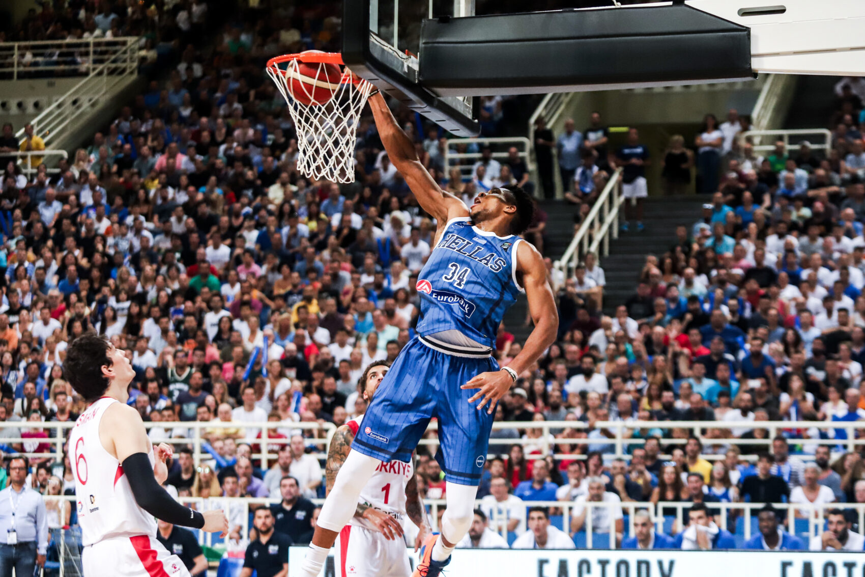 Απόντος Μπουρούση, η Ελλάδα ξεκίνησε το παιχνίδι με τον Γιάννη Αντετοκούνμπο στο «5», πλαισιωμένο από Πρίντεζη, Παπαπέτρου, Παπανικολάου και Καλάθη. Το… λάθος να προηγηθεί έκανε η Τουρκία, με τον «Greek Freak» και τον υπαρχηγό του Ολυμπιακού να σπρώχνουν την Εθνική στο ανοικτό γήπεδο και σε ένα 13-0 μέσα σε τέσσερα λεπτά (13-2). Η διαφορά έφτασε ακόμη και στο +13 (17-4), με τον Γουίλμπεκιν να κόβει τη… φόρα των παικτών του Σκουρτόπουλου και να μειώνει σε 17-11. Με την είσοδο των Λαρεντζάκη και Παπαγιάννη η Ελλάδα πήγε ξανά σε διψήφια απόσταση (22-12), με το τέλος του πρώτου δεκαλέπτου να τη βρίσκει στο +7 (24-17), αλλά τον Κορκμάζ να κάνει τη… ζημιά στην άμυνα.