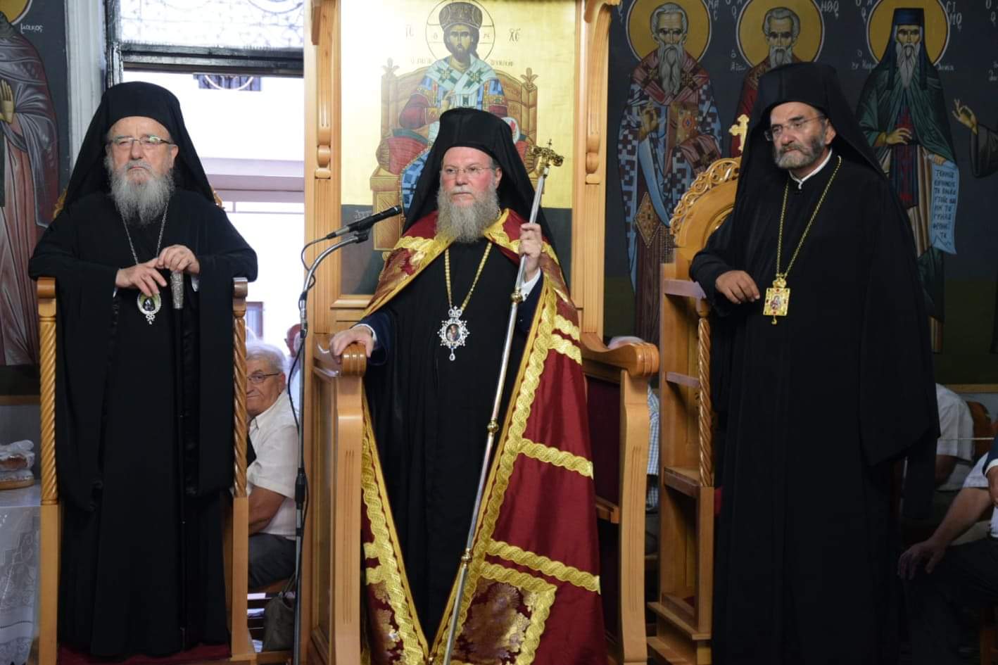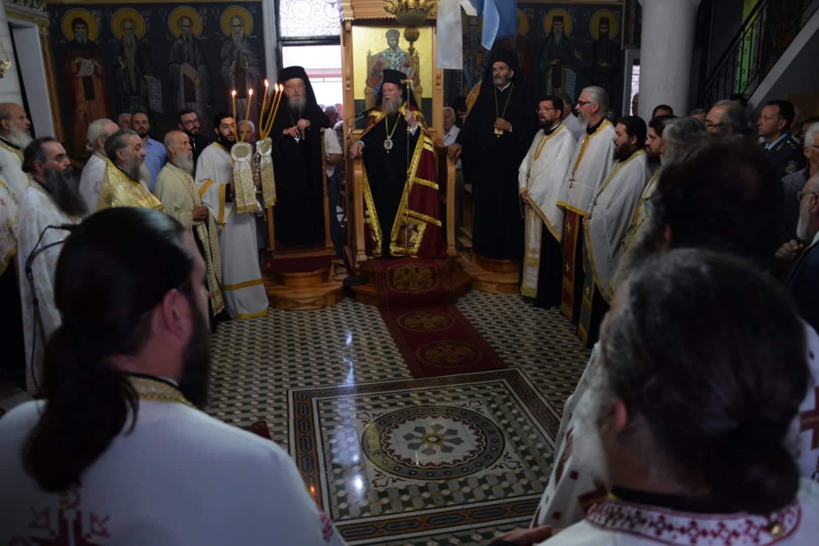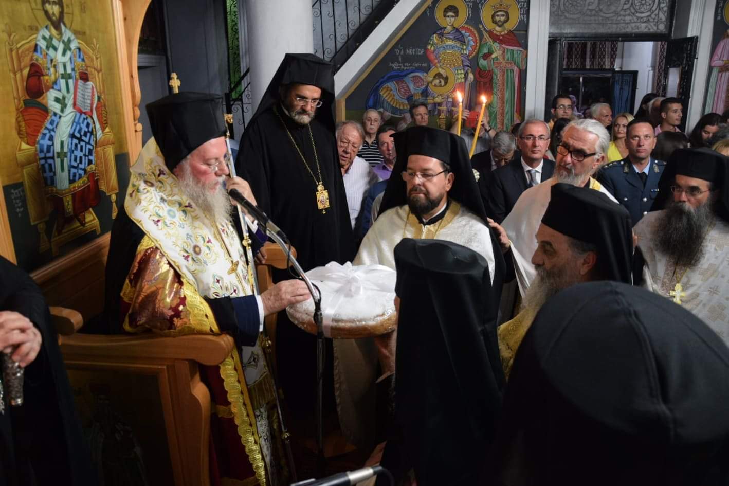 Στον Εσπερινό χοροστάτησε ο Θεοφιλέστατος Επίσκοπος Ευκαρπίας κ. Ιερόθεος και συγχοροστάτησαν ο Θεοφιλέστατος Επίσκοπος Αβύδου κ. Κύριλλος και ο Ποιμενάρχης μας, Σεβασμιώτατος Μητροπολίτης Αιτωλίας και Ακαρνανίας κ. Κοσμάς.
