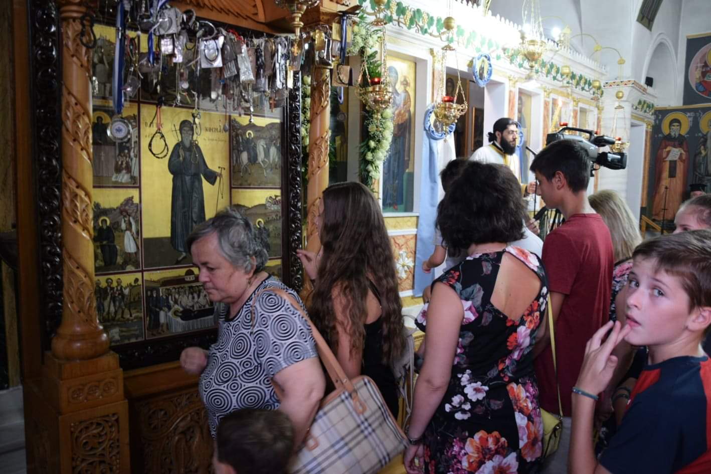 Αδελφοί μου ο Άγιος μας διδάσκει όλους με τον λόγο του, με το παράδειγμά του, με το μαρτύριό του, την μίμηση του Χριστού. Ας ακουσθεί η φωνή του απόψε από αυτό το ιερό Μοναστήριο, από αυτή την ιερά εικόνα του, τα ιερά λείψανά του, από όλους μας να ακουσθεί να λέγει “αδελφοί μου να προσεύχεσθε, να νηστεύετε, να μεταλλαμβάνετε, να έχετε αγάπη μεταξύ σας, να συγχωρείτε ο ένας τον άλλον”».