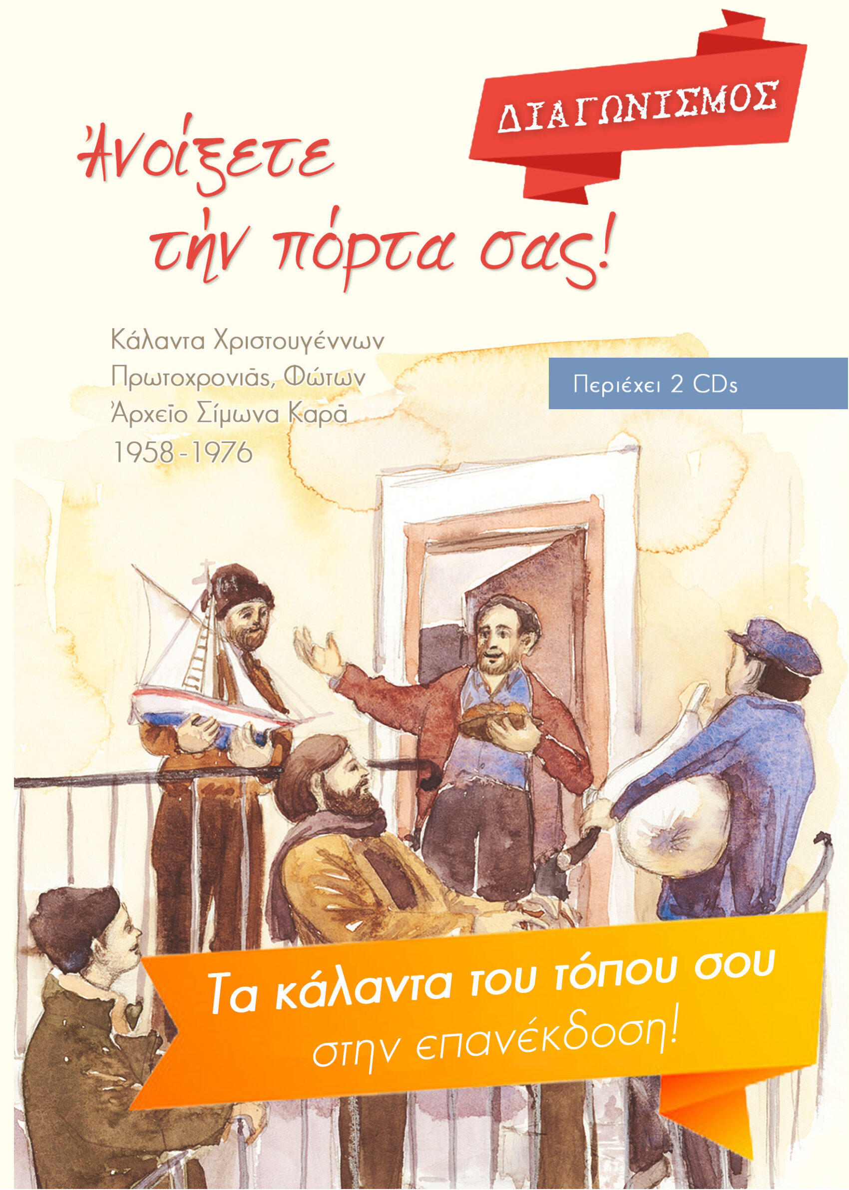 Η έκδοση “Ανοίξετε την πόρτα σας!”, με 59 αυθεντικές ηχογραφήσεις καλάντων από το Αρχείο του Σίμωνα Καρά, εξαντλήθηκε! Ετοιμάζουμε πυρετωδώς την επανέκδοση, βελτιωμένη και εμπλουτισμένη! Εμπλουτισμένη καί με τα κάλαντα του δικού σου τόπου!