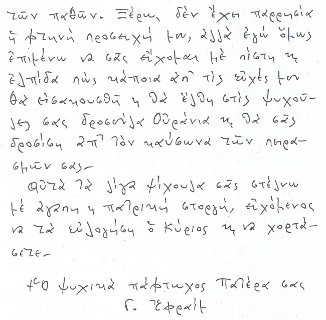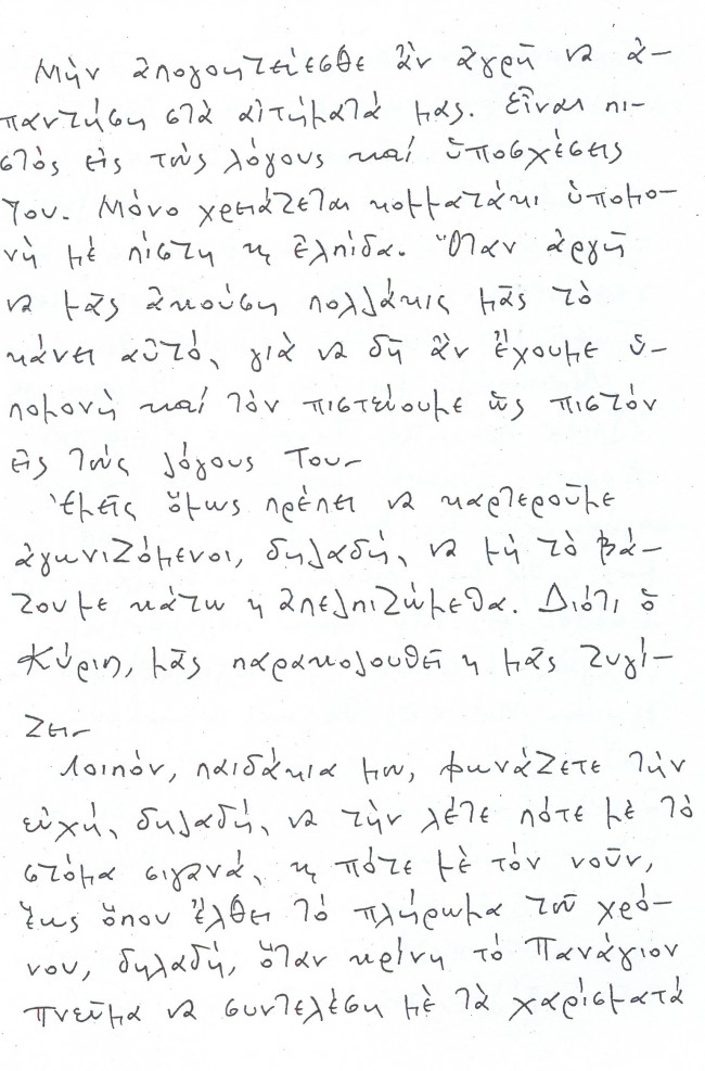 Γέροντος Εφραίμ Φιλοθεΐτου-Αριζονίτου, επιστολή: Μην απογοητεύεσθε…