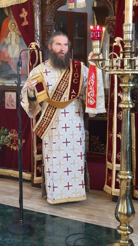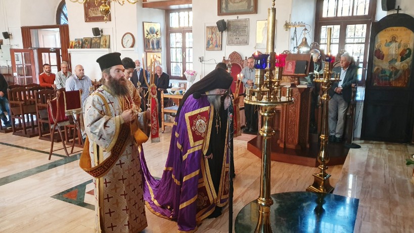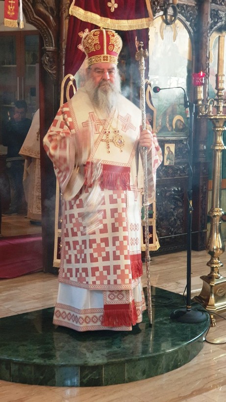Στο τέλος της Θείας Λειτουργίας χειροθέτησε σε πνευματικό τον εφημέριο του ναού πρωτοπρεσβύτερο Γεώργιο Κόρτα.