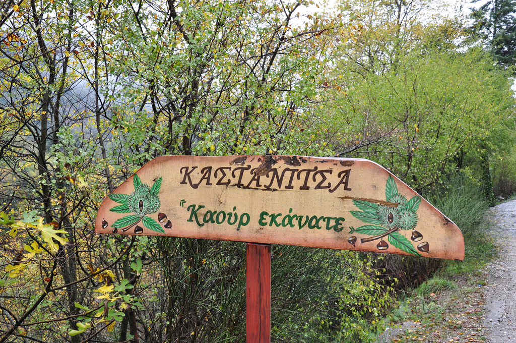 Αν όμως το χρώμα της το οφείλει στον ασβέστη, το όνομα της προέρχεται φυσικά από τα κάστανα και το γειτονικό καστανόδασος. Παλαιότερα, η συγκομιδή των κάστανων έφτανε τους 500 τόνους, ενώ και ακόμα και σήμερα το κάστανο της περιοχής είναι φημισμένο και αποτελεί το κυριότερο παραγωγικό προϊόν της, με σχεδόν 4.000 στρέμματα καλλιεργούμενη έκταση.