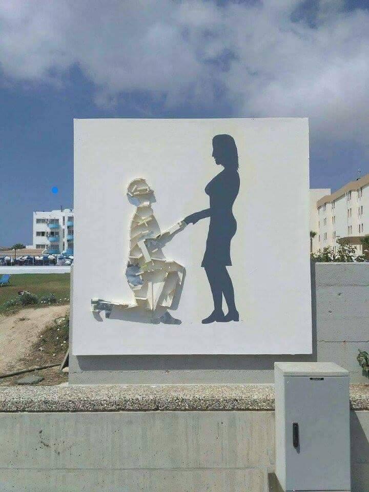 Το δεύτερο γλυπτό λέγεται «Πρόταση Γάμου». Έχει στηθεί σ’ ένα σημείο του παραλιακού πεζόδρομου όπου συνηθίζεται να γίνονται γάμοι κατά την περίοδο του καλοκαιριού. Η σκιά ενός άνδρα γονατισμένου που κάνει πρόταση γάμου σε μια ζωγραφισμένη γυναίκα, εμφανίζεται κατά τους ίδιους μήνες με το πρώτο έργο, στις 10:30 το πρωί.