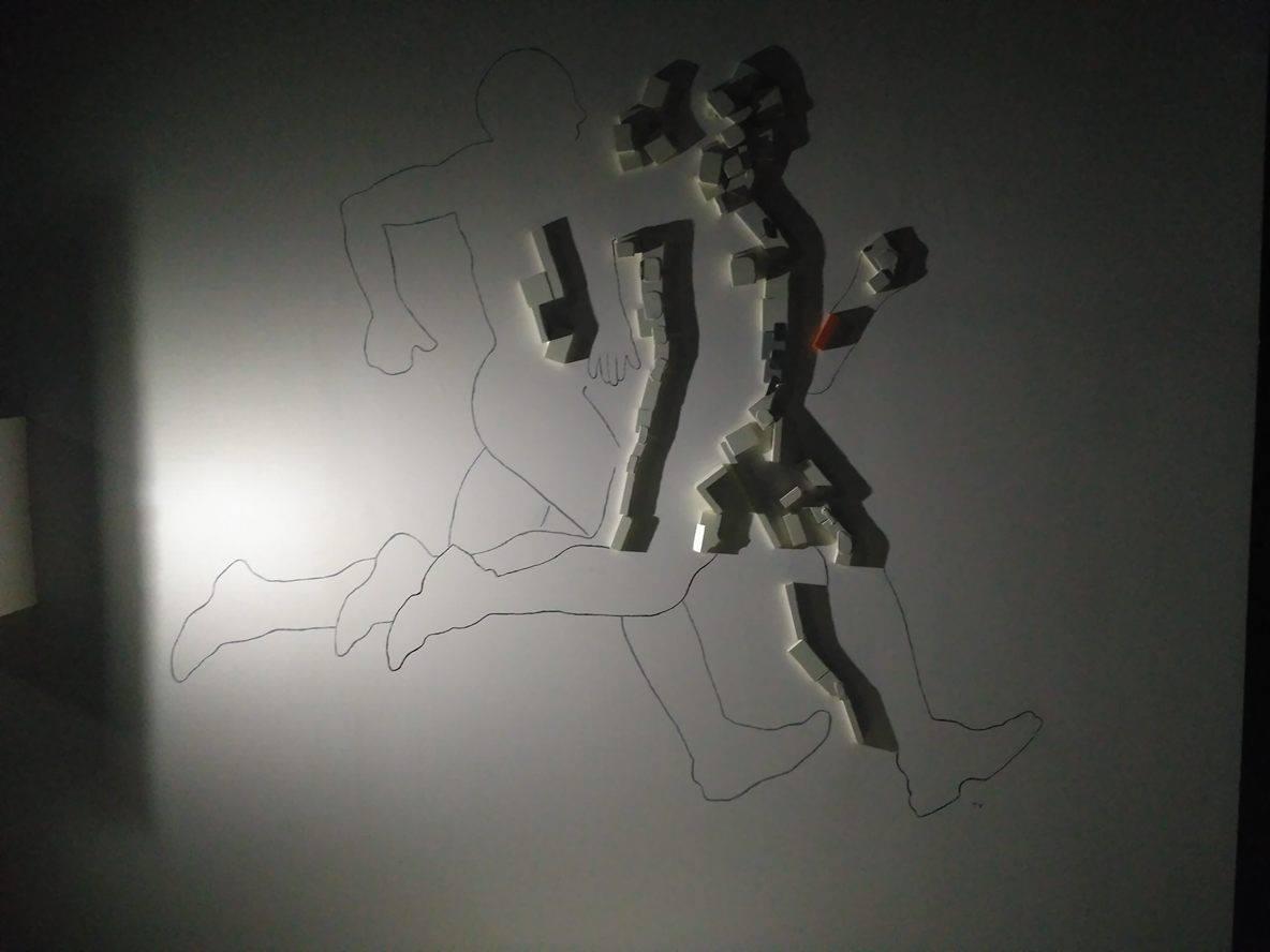 Η επόμενη δημιουργία λέγεται «Δρομέας». Ένα έργο που σε προβληματίζει, σαν εικόνα, καθώς οι σκιές άλλοτε αποτελούν το υλικό μέρος των μορφών (πχ χαρακτηριστικά προσώπου, στήθος κλπ) κι άλλοτε υποδεικνύουν τα όρια του υλικού και του άυλου (πχ η ακμή της σκιάς οριοθετεί το πίσω μέρος του κεφαλιού του δρομέα…).
