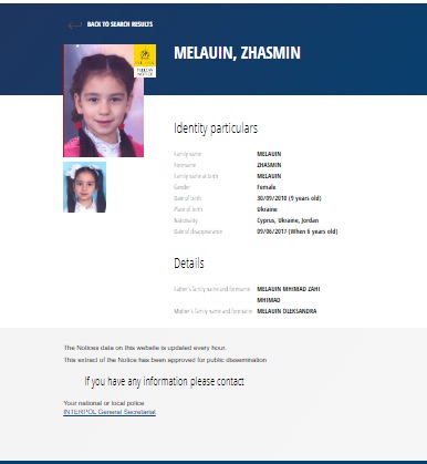 Πάντως, στη σελίδα της Interpol, στα ελλείποντα πρόσωπα από Κύπρο, υπάρχει σχετική ανάρτηση για την Τζασμίν, με τα στοιχεία της και την ημερομηνία της εξαφάνισης/απαγωγής.