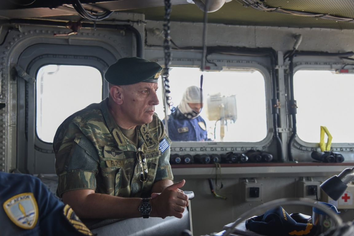 Όπως ανακοίνωσε το ΓΕΕΘΑ:«Την Τρίτη 23 Ιουνίου 2020 ο Αρχηγός ΓΕΕΘΑ Στρατηγός Κωνσταντίνος Φλώρος συνοδευόμενος από τον Αρχηγό ΓΕΝ Αντιναύαρχο Στυλιανό Πετράκη ΠΝ και τον Αρχηγό Στόλου Αντιναύαρχο Παναγιώτη Λυμπέρη ΠΝ, επιβιβάστηκε στη Φ/Γ ΑΙΓΑΙΟΝ από την οποία παρακολούθησε έως τις πρώτες πρωινές ώρες διακλαδικές επιχειρησιακές δραστηριότητες στο πλαίσιο της τελικής φάσης επιχειρησιακής εκπαίδευσης μονάδων και των τριών Κλάδων των Ενόπλων Δυνάμεων, που σχεδιάστηκε και υλοποιήθηκε το προηγούμενο χρονικό διάστημα σε όλη τη Περιοχή Ευθύνης του Αρχηγού ΓΕΕΘΑ και αποσκοπούσε στον έλεγχο, στη δοκιμή και στη βελτιστοποίηση λειτουργιών και διαδικασιών διεξαγωγής διακλαδικών επιχειρήσεων.
