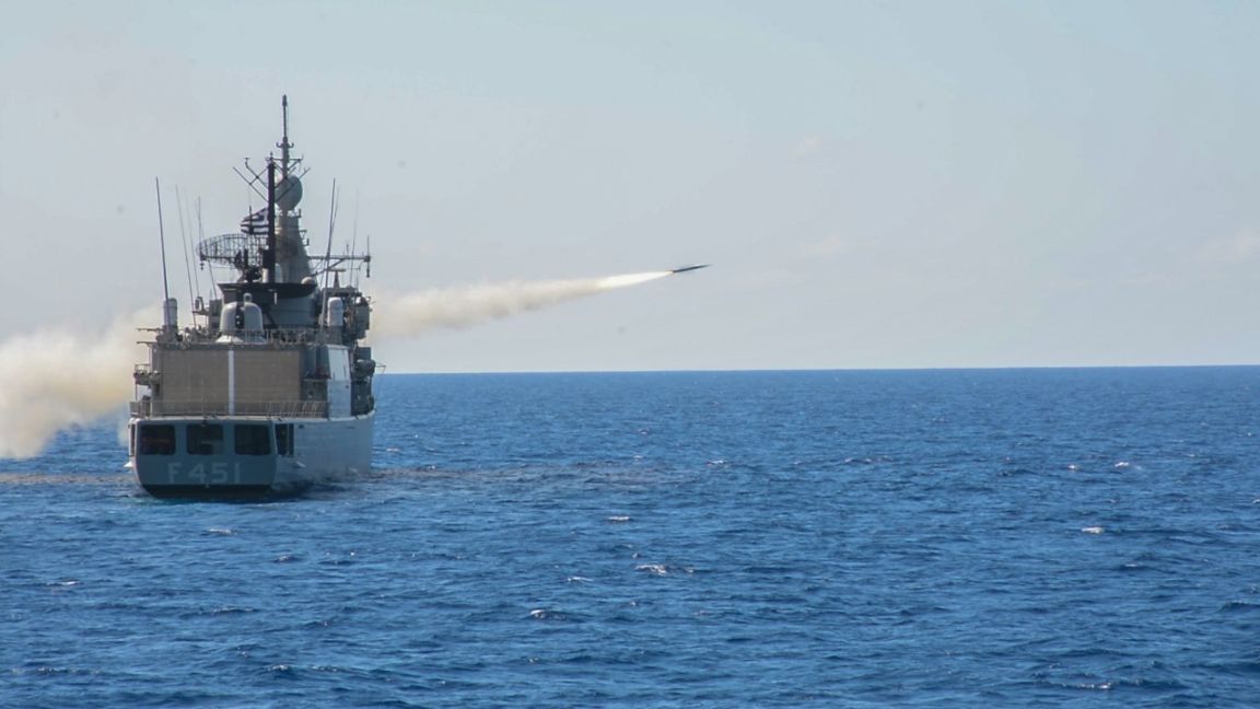 Ένα Κ/Β RIM-7 Sea Sparrow από τη Φ/Γ ΛΗΜΝΟΣ.