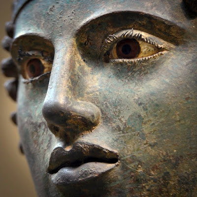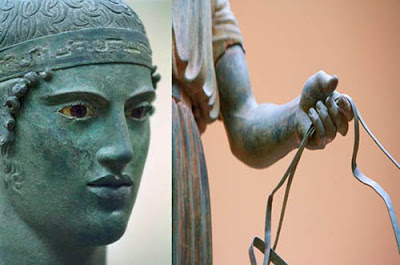 Τα μάτια του Ηνίοχου μοιάζουν ζωντανά. Ίσως, κανένα άλλο άγαλμα δεν δίνει αυτή τη μοναδική αίσθηση.
