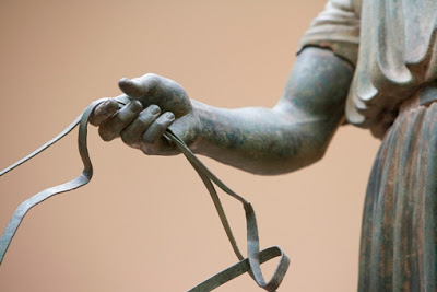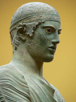 Λένε ότι στο πρόσωπό του έχει αιχμαλωτιστεί η στιγμή αμέσως μετά τη νίκη και η ικανοποίηση του νικητή, χωρίς να έχει σβήσει ακόμη από την έκφραση του προσώπου η ένταση, αλλά και η αυτοσυγκέντρωση που απαιτούσε ο αγώνας, με το τέθριππο.
