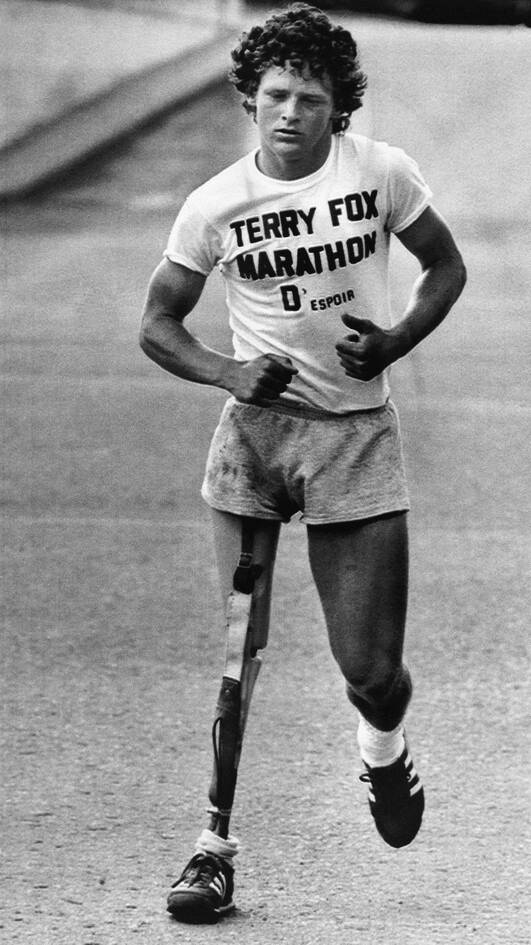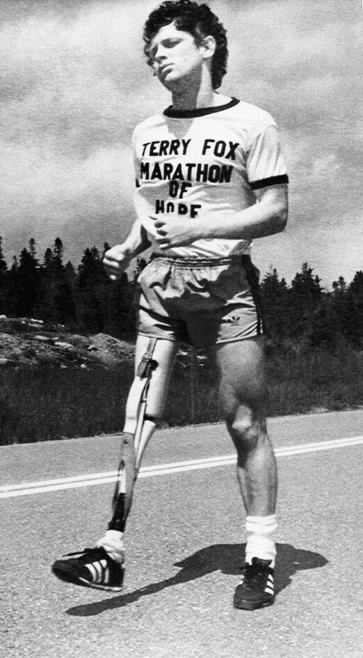 Αφού έχασε το πόδι του από τον καρκίνο, ο Φοξ ξεκίνησε τον «Μαραθώνιο της Ελπίδας» – ένα ιστορικό ταξίδι από τη μια άκρη του Καναδά στην άλλη για να ευαισθητοποιήσει και να κερδίσει χρήματα για την έρευνα για τον καρκίνο.