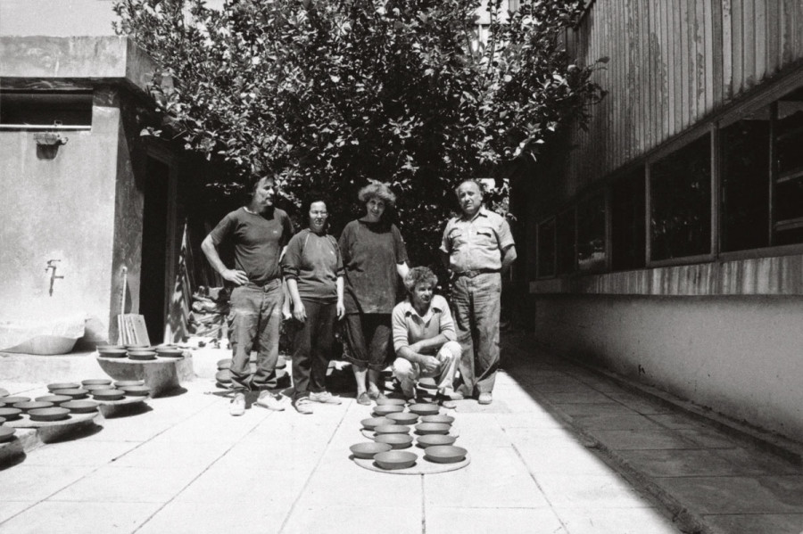• Γυρνώντας στην Ελλάδα από την Αγγλία έζησα περισσότερο με τους ανθρώπους της τέχνης παρά με τους ανθρώπους της κεραμικής. Ξεκίνησα από ένα εργαστηριάκι, ένα υπογειάκι, στην οδό Σόλωνος. Είχε μια μικρή πόρτα που οδηγούσε στο καταφύγιο της πολυκατοικίας. Υπήρχε το καταφύγιο, γιατί τότε που σας λέω ήταν το ’60 και τα καταφύγια τα κρατούσαν ακόμα ως καταφύγια. Εγώ, βέβαια, το χρησιμοποίησα για να βάλω τον τροχό και τις λάσπες μου. Στον μπροστινό χώρο έβαζα αυτά που έφτιαχνα.