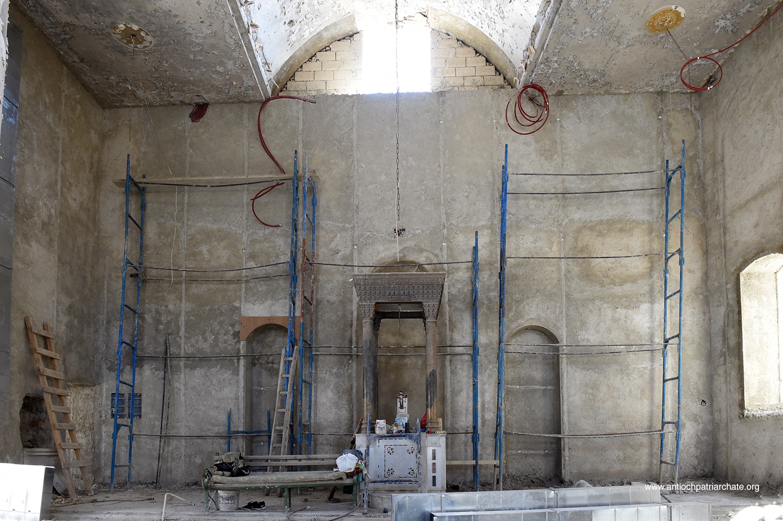 Patriarch of Antioch tours another church under reconstruction after previous destruction by Islamist terrorists