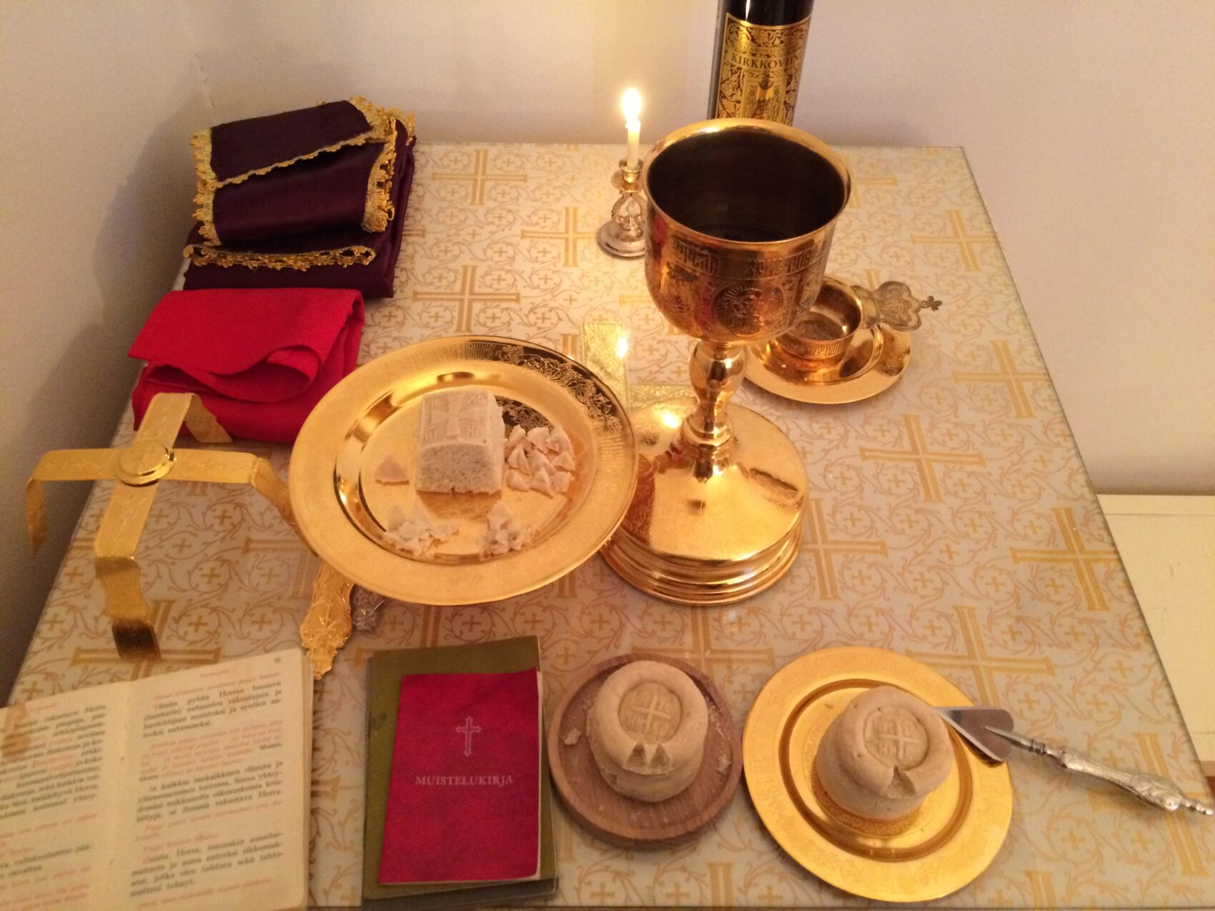 Όταν τοποθετούμε τη μερίδα της Υπεραγίας Θεοτόκου πάνω στον Άγιο Δίσκο, λέμε: «Παρέστη η Βασίλισσα εκ δεξιών Σου…» Ο γέροντας ιερεύς νόμιζε ότι, αφού λέγει «εκ δεξιών Σου», πρέπει να τοποθετείται η μερίδα της Παναγίας δεξιά του Αμνού (όπως κοίταζε τον Άγιο Δίσκο)· δηλαδή τοποθετούσε ανάποδα τις μερίδες.