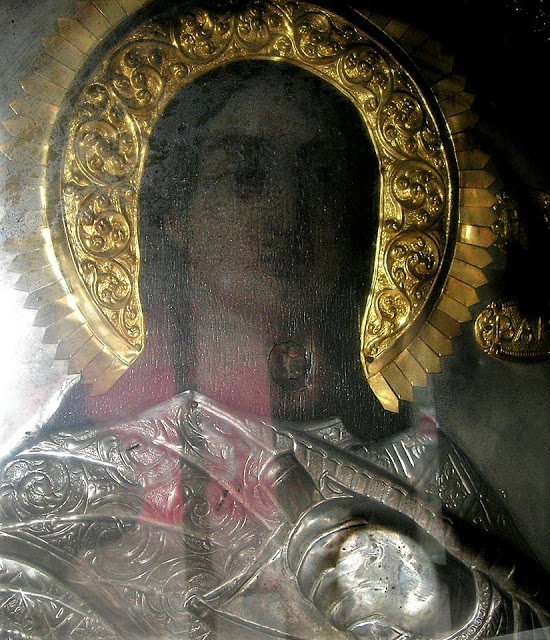 Στη φωτογραφία της εικόνας διακρίνεται στο λαιμό το «τραύμα» από τη σφαίρα.