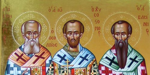 κα\’. Αφού εώρτασε πρώτα τον καθέναν χωριστά μέσα στο μήνα Ιανουάριο, η Εκκλησία εορτάζει σήμερα μαζί και τους τρεις μεγάλους Ιεράρχες και οικουμενικούς διδασκάλους «Βασίλειον τον Μέγαν και τον Θεολόγον Γρηγόριον, συν τω κλείνώ Ιωάννη τω την γλώτταν χρυσορρήμονι». Συγχρόνως και η Ελληνική Παιδεία τιμά τους προστάτες των Ελληνικών γραμμάτων, γιατί στο έργο των τριών Ιεραρχών, περισσότερο παρά στους άλλους Πατέρες της Εκκλησίας, έχουν συζευχθή αρμονικά η υγιής ελληνική σκέψη και το καθαρό χριστιανικό πνεύμα. Εκείνο που λέγει ο Γρηγόριος ο Θεολόγος για τον Μέγα Βασίλειο έχει εφαρμογή και για τους τρεις μεγάλους Ιεράρχες· «Σπουδή γαρ ευφυΐα συνέδραμεν, εξ ων επιστήμαι και τέχναι το κράτος έχουσιν» (11). Προικισμένοι με φυσικά προσόντα, πρόσθεσαν σ’ αυτά τη σπουδή και την επιμέλειά τους. Και οι τρεις σοφοί και άγιοι, φωτεινά πρότυπα και πολύτιμοι οδηγοί σε όλους τους καιρούς και σε όλες τις γενεές των ανθρώπων.