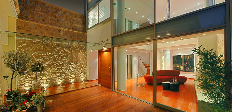 Συγκερνώντας το παλιό με το νέο άψογα, το αρχιτεκτονικό γραφείο της Κατερίνας Βαλσαμάκη συνδύασε την αίγλη του -διατηρητέου- νεοκλασικού, με τις ανέσεις και τις καθαρές γραμμές του νέου κτίσματος. Το νέο κτίριο «συμπλήρωσε» το νεοκλασικό, και τα δύο μαζί έγιναν ένα, με τις προφανείς αντιθέσεις τους να λειτουργούν σαν έναυσμα για να εξάψουν την περιέργεια των επισκεπτών, ακόμη και τον περαστικών αλλά και να δίνουν ενδιαφέρουσες νότες στην καθημερινότητα των ενοίκων του.