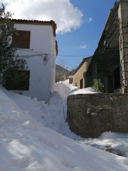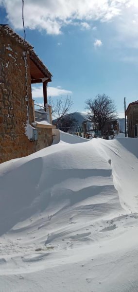 Φυσικά οι δρόμοι εντός των χωριών είναι αδιαπέραστοι. Όμως οι κάτοικοι έμπειροι πάντα έχουν προμήθειες, τρόφιμα, ξύλα και πάντα ένα φτιάρι μέσα στο σπίτι για να ξεχιονίσουν ένα χρειαστεί, να ανοίξουν διάδρομο για την τουαλέτα και να πάνε στη στάνη τους για να περιποιηθούν τα ζώα τους.