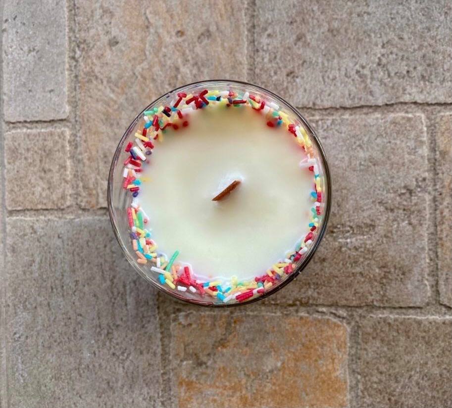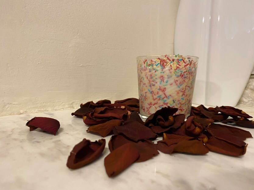 ”Δέχομαι ειδικές παραγγελίες. Νομίζω πως το αγαπημένο μου κερί είναι αυτό το πολύχρωμο της φωτογραφίας! Το ονόμασα Birthday Cake γιατί συνήθως βλέπουμε τρούφα στα γλυκά των γενεθλίων μας. Με τα τόσα χρώματα παρομοιάζω όλες τις όμορφες στιγμές που περνάμε σε μαζώξεις με τους δικούς μας ανθρώπους.