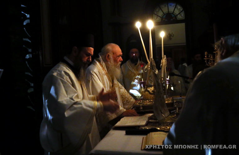 Τον Μακαριώτατο πλαισίωσαν ο Θεοφ. Επίσκοπος Ευρίπου κ. Χρυσόστομος, ο Θεόφ. Επίσκοπος Ωρεών κ. Θεόφιλος, Αρχιγραμματέας της Ι. Συνόδου της Εκκλησίας της Ελλάδος, ο Πρωτοσύγκελλος της Ι. Αρχιεπισκοπής Αθηνών, Πανοσ. Αρχιμανδρίτης π. Βαρνάβας Θεοχάρης και κληρικοί του Καθεδρικού Ι.Ναού.