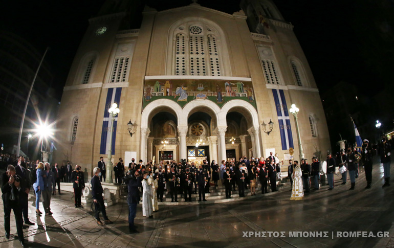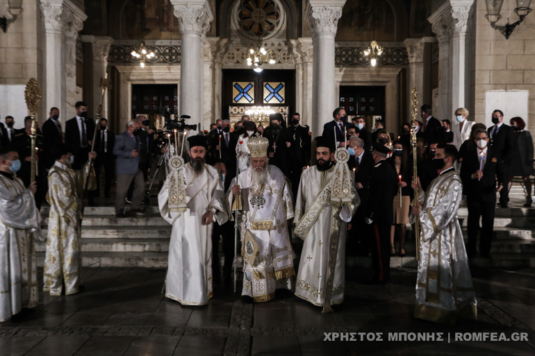 Στον Καθεδρικό Ι. Ναό Αθηνών τελέστηκε το βράδυ η Ακολουθία της Αναστάσεως και στη συνέχεια η Αναστάσιμη Θεία Λειτουργία προεξάρχοντος του Μακαριωτάτου Αρχιεπισκόπου Αθηνών και Πάσης Ελλάδος κ. Ιερωνύμου, παρουσία της Προέδρου της Δημοκρατίας κ. Αικ. Σακελλαροπούλου.