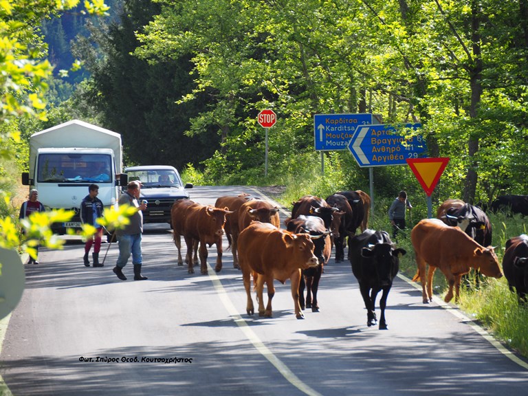 Τα φωτογραφικά στιγμιότυπα του άρθρου, αφορούν μετακίνηση βοοειδών από την Τοπική Κοινότητα Μαυροματίου του Δήμου Μουζακίου – Θεσσαλίας, προς τις πλαγιές της Καράβας ( Ανατολική Αργιθέα – Καρδίτσας ), την Κυριακή των Μυροφόρων 16/05/2021.