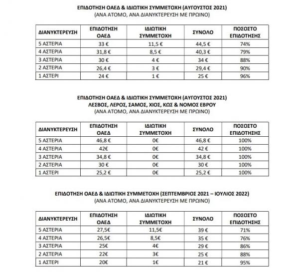 Επιδότηση ΟΑΕΔ: 55 € (2 ενήλικες Χ 20 €, 1 παιδί 15 € +1 παιδί δωρεάν)