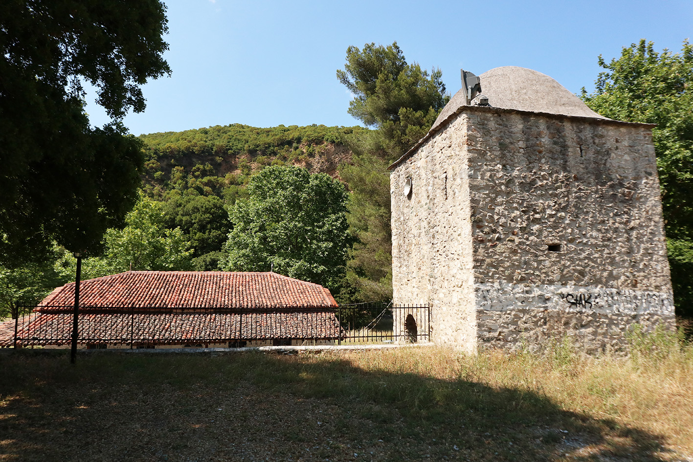 Η Μονή βρίσκεται μέσα σε καταπράσινο τοπίο με ποταμάκι από δίπλα και μέσα σε μεγάλα πλατάνια.