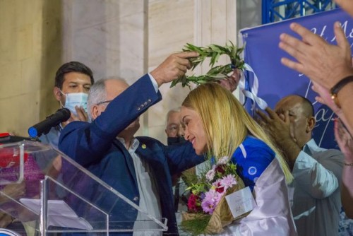 «Η γενέτειρα σου πόλη, Λεμεσός, σε τιμά για την κατάκτηση του χρυσού και χάλκινου μεταλλίου στους Παραολυμπιακούς Αγώνες Τόκιο 2020. Σε ευχαριστούμε», ανέφερε ο Δήμαρχος Λεμεσού, Νίκος Νικολαΐδης, διαβάζοντας την αναγραφή σε τιμητική πλακέτα και στεφανώνοντας την Καρολίνα Πελενδρίτου με κότινο ελιάς.