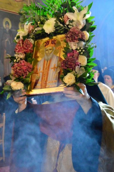Ακολούθως ο Μητροπολίτης Γέρων Χαλκηδόνος ευλόγησε το κόλλυβο του Αγίου και κήρυξε τον θείο λόγο.