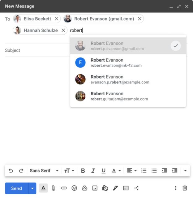 Όλοι έχουμε στείλει ένα email σε λάθος άτομο. Αυτό είναι εύκολο να γίνει επειδή η παρακολούθηση μιας αυτοσυμπληρούμενης διεύθυνσης ηλεκτρονικού ταχυδρομείου δεν είναι πάντα το πρώτο και το κυριότερο στοιχείο που έχουμε στο μυαλό, όταν σκεφτόμαστε τι να γράψουμε. Τώρα, το Gmail θα εμφανίζει τα avatars για κάθε παραλήπτη στα πεδία To, Cc και Bcc καθιστώντας τα λάθη πολύ λιγότερο πιθανά.