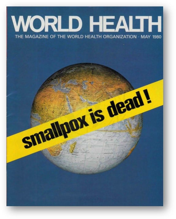 Σταθερά και σταδιακά, τα κρούσματα ευλογιάς πέφτανε παγκοσμίως, μέχρι που έμειναν 1-2 χώρες με μερικά κρούσματα. Και το 1980 έρχεται η στιγμή που όλη η ανθρωπότητα περίμενε. Στις 8 Μάϊου 1980, το περιοδικό World Health, ανακοινώνει τα αποτελέσματα της 33ης Συνεδρίας του World Health Assembly του ΠΟΥ. Η ευλογιά έχει εξαλειφθεί! Ανατριχίλα..