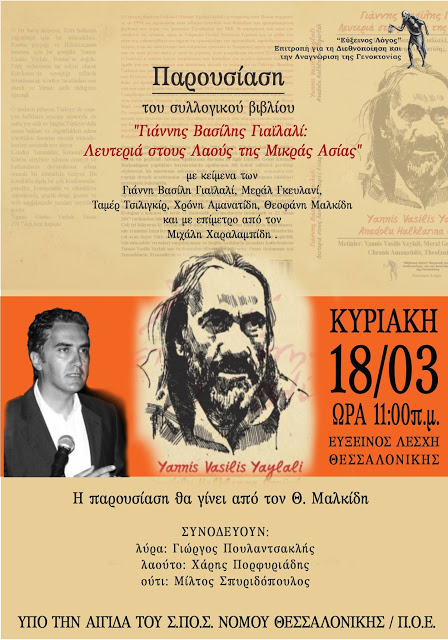 «Γιάννης-Βασίλης Γιαϊλαλί: Λευτεριά στους λαούς της Μικράς Ασίας»
