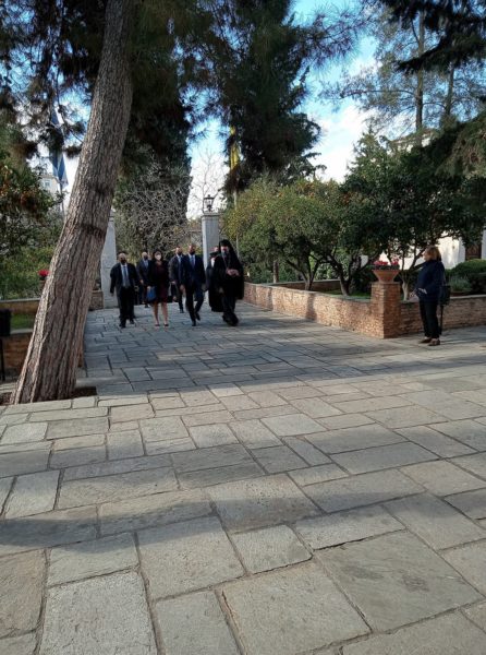 Τον Πρωθυπουργό υποδέχθηκε ο Αρχιγραμματέας της Ιεράς Συνόδου, Θεοφιλέστατος Επίσκοπος Ωρεών κ. Φιλόθεος, στην είσοδο του προαυλίου της Μονής Πετράκη. Κατόπιν, στην είσοδο της Μονής και ο ηγούμενος της Μονής, Μητροπολίτης Θαυμακού Ιάκωβος. Τον Πρωθυπουργό συνόδευσε, επίσης, ο Κυβερνητικός Εκπρόσωπος, Γιάννης Οικονόμου.