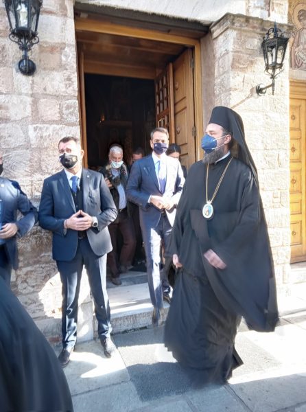 Ο Κυριάκος Μητσοτάκης μπήκε στο Καθολικό της Ιεράς Μονής Ασωμάτων Πετράκη, προσκύνησε και στην είσοδο του Συνοδικού Μεγάρου τον περίμενε ο Μακαριώτατος Αρχιεπίσκοπος Αθηνών και πάσης Ελλάδος κ.κ. Ιερώνυμος.