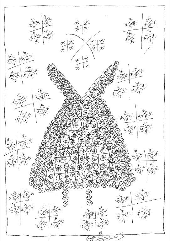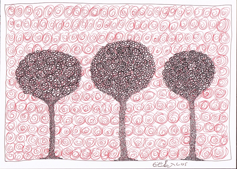 Πρόκειται για έργα ζωγραφισμένα με ραπιδογράφους σε μαύρο και κόκκινο χρώμα, τα οποία όσον αφορά την αισθητική τους αντλούν έμπνευση από το έργο του συγγραφέα και ζωγράφου Νίκου Γαβριήλ Πεντζίκη, κάτι που ο εικαστικός Χρήστος Γουσίδης σχολιάζει: