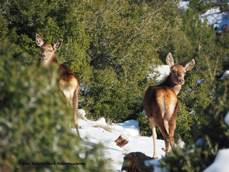 Τα ελάφια του ”  Εθνικού  Δρυμού Πάρνηθας ” αναζητούν τροφή σε σημεία όπου ο ήλιος έχει λιώσει το χιόνι.​