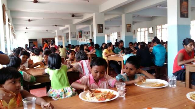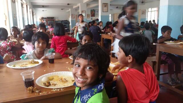 Έτσι από το 1992 ξεκινήσαμε στην αυλή του Ελληνικού Ναού στην Καλκούτα το πρωινό συσσίτιο, με ζεστό γάλα, μπισκότα και βιταμίνες, για 250 περίπου παιδάκια της περιοχής που από νωρίς το πρωί μαζεύονται έξω από την πόρτα και περιμένουν. Για πολλά παιδάκια, το πρωινό αυτό είναι ίσως το μοναδικό γεύμα της ημέρας.