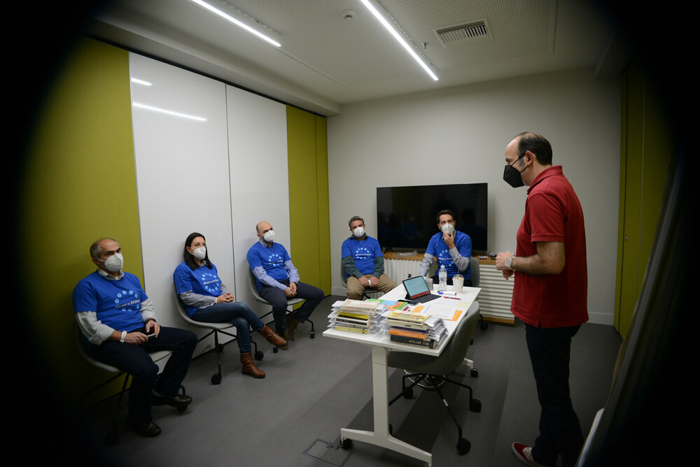 Οι εργαζόμενοι-εθελοντές της εταιρείας Alcon εκπαιδεύονται σε ζητήματα αρωγής και σωστής χρήσης του λόγου, για τις ανάγκες της ηχογράφησης.