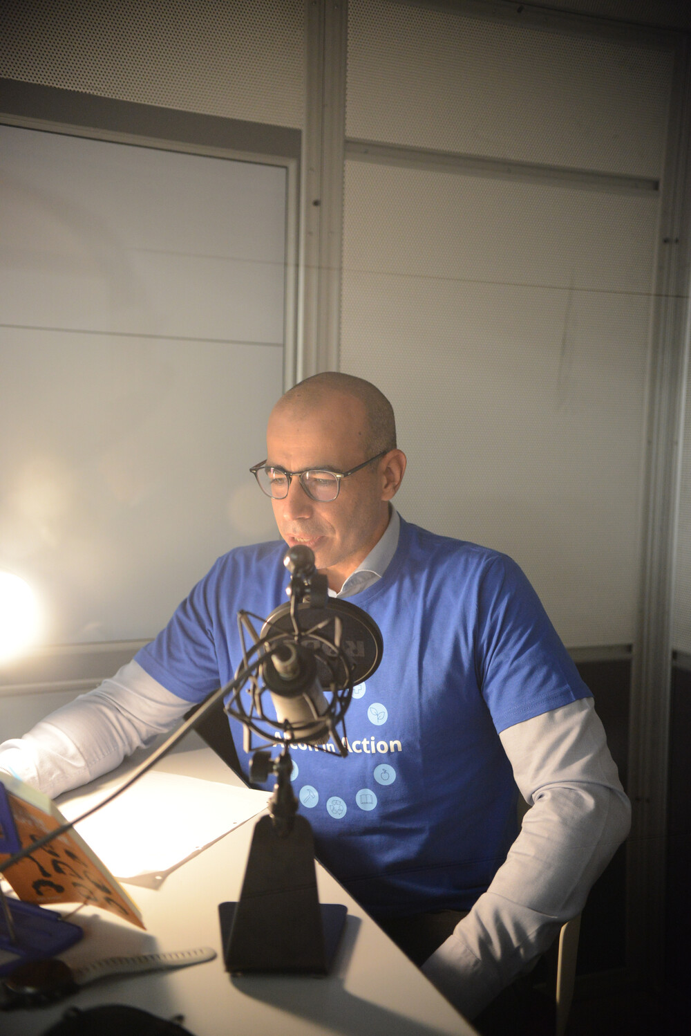 Ο κος Γεώργιος Παπαδόπουλος, Γενικός Διευθυντής της Alcon Hellas, ηχογραφεί για το Διαβάζω Για τους Άλλους.