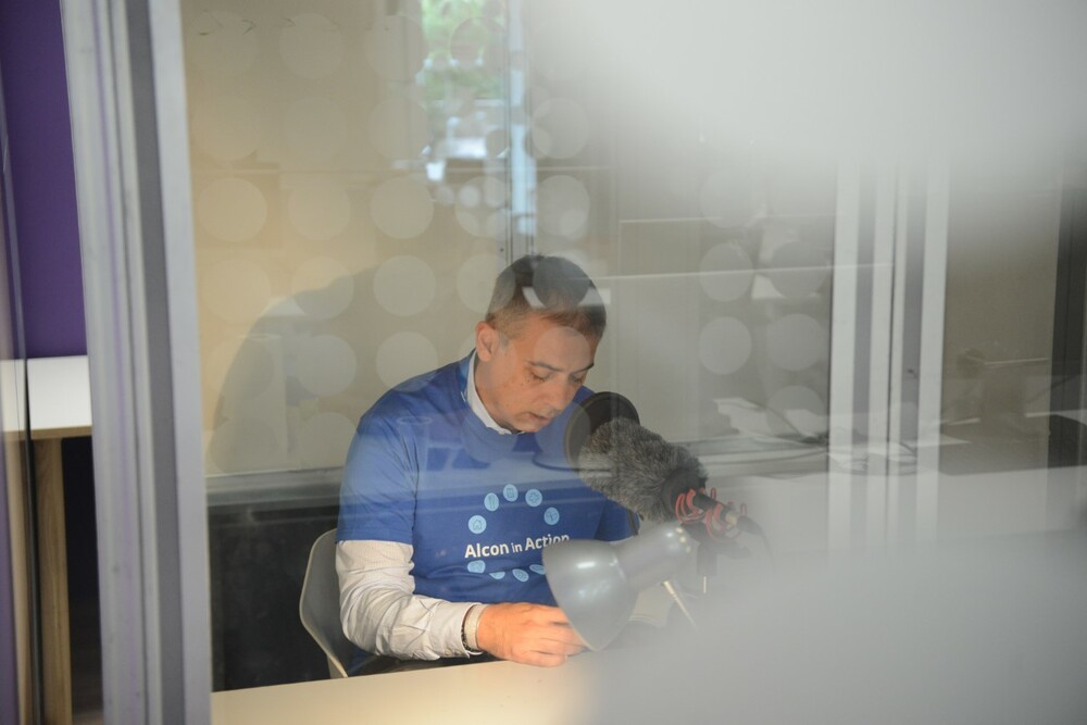 Εργαζόμενος-εθελοντής της εταιρείας Alcon ηχογραφεί