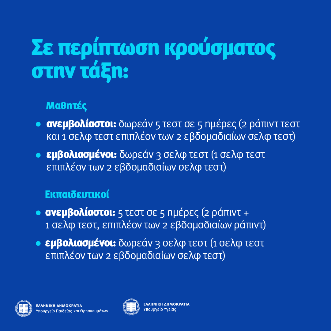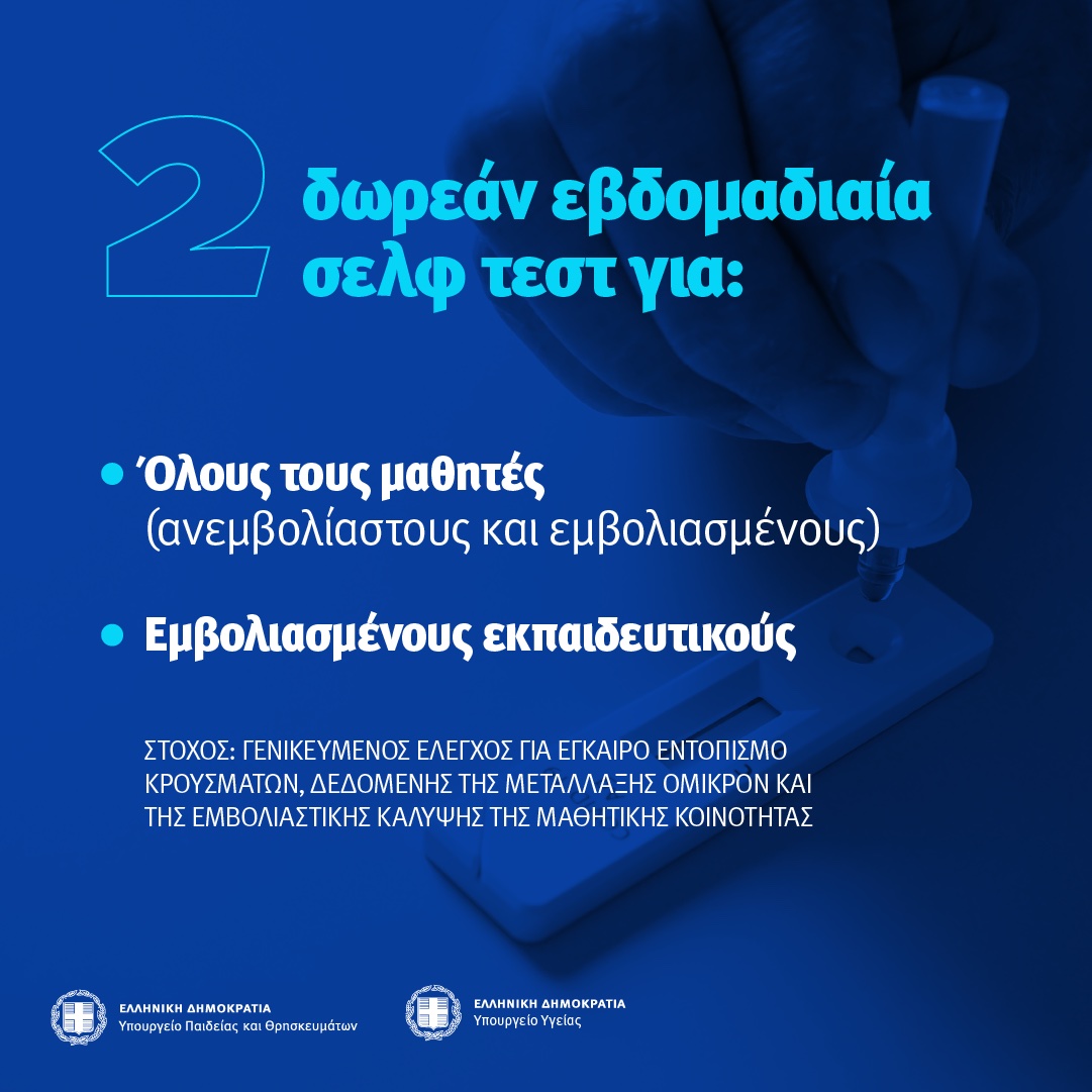 3 self test την πρώτη εβδομάδα στο σχολείο για όλους τους μαθητές
