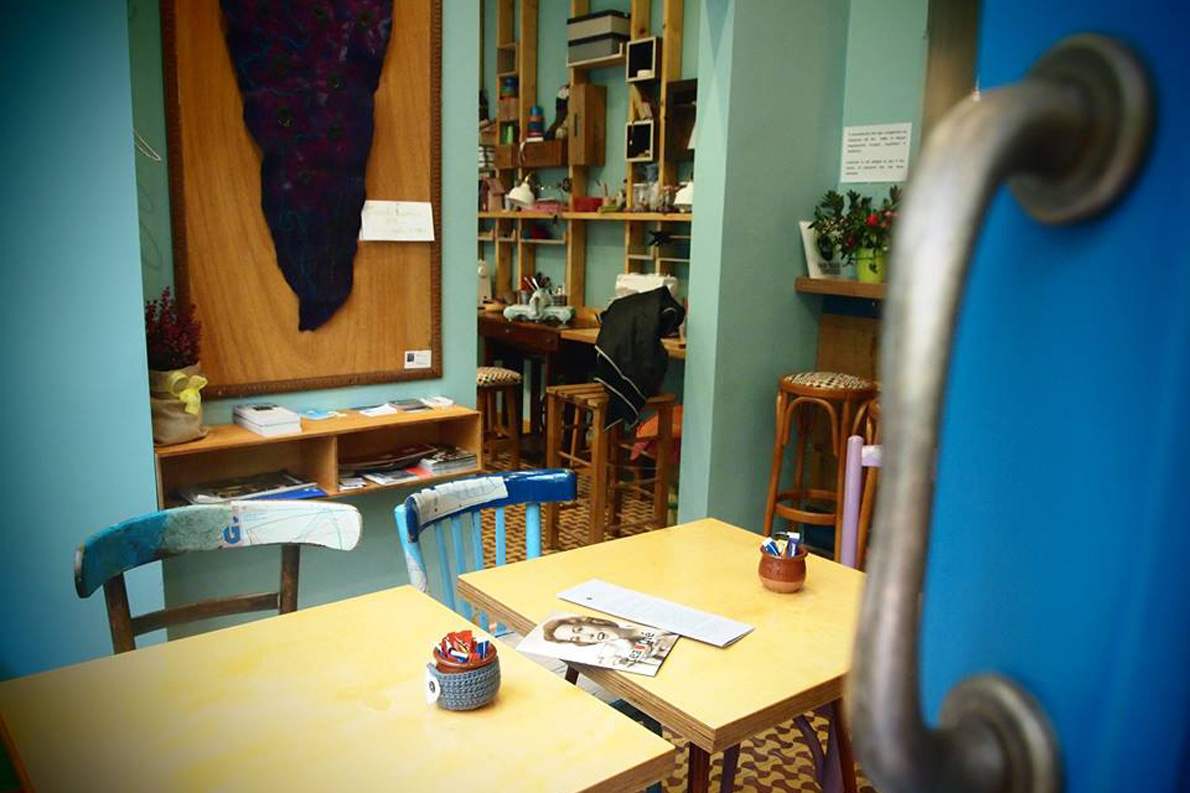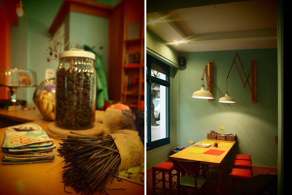Στην Ολύμπου, στο ύψος του Εργατικού Κέντρου Θεσσαλονίκης, έχει ανοίξει ένα καφέ στο οποίο μπορείτε να γίνετε κυριολεκτικά μαλλιά κουβάρια. Κι αυτό γιατί λειτουργεί παράλληλα ως εργαστήριο χειροποίητων κατασκευών με πάγκο εργασίας, ραπτομηχανή, βελόνες, δέρματα, κλωστές, μαλλιά, κουβάρια και όλα τα συναφή.