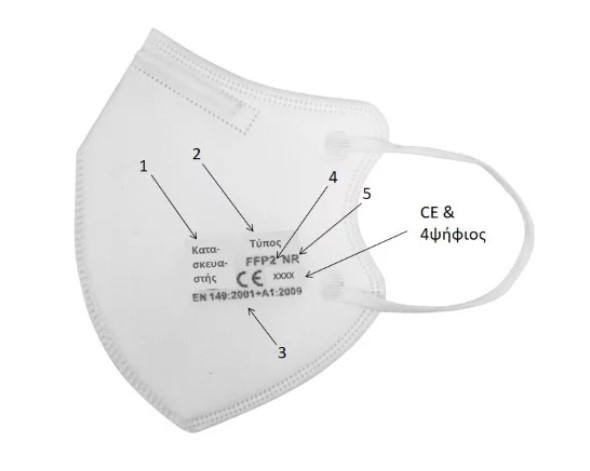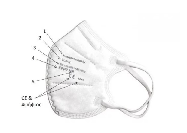Β. Η σήμανση CE συνοδεύεται από έναν τετραψήφιο αριθμό, που προσδιορίζει τον οργανισμό πιστοποίησης της μάσκας (κοινοποιημένος οργανισμός-Notified Body –NB). O κοινοποιημένος οργανισμός διενεργεί τη διαδικασία αξιολόγησης της συμμόρφωσης της μάσκας. Οι οργανισμοί κοινοποίησης με έγκυρη κοινοποίηση για ΜΑΠ φαίνονται στην ακόλουθη ιστοσελίδα της Ε.Ε: https://ec.europa.eu/growth/tools-databases/nando/index.cfm?fuseaction=directive.notifiedbody&dir_id=155501.