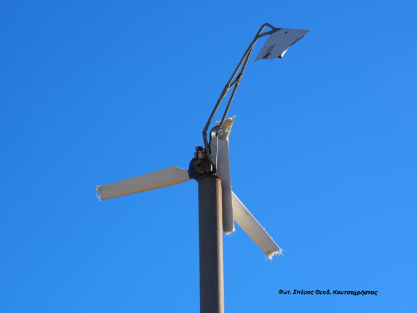 Σε δύο φωτογραφικά στιγμιότυπα του άρθρου, η ανεμογεννήτρια όταν ήταν σε λειτουργία.