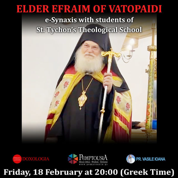 The online platform Pemptousia today will host a theological and spiritual dialogue from Mount Athos with the Elder Archimandrite Ephraim, the Abbot of the Holy and Great Monastery of Vatopedi, and students and friends of the St. Tyhonas seminary. The online assembly will begin at 20.00 Athens time, or 18.00 GMT. A parallel translation into Romanian, English, Russian, Georgian, French and Arabic will be available.