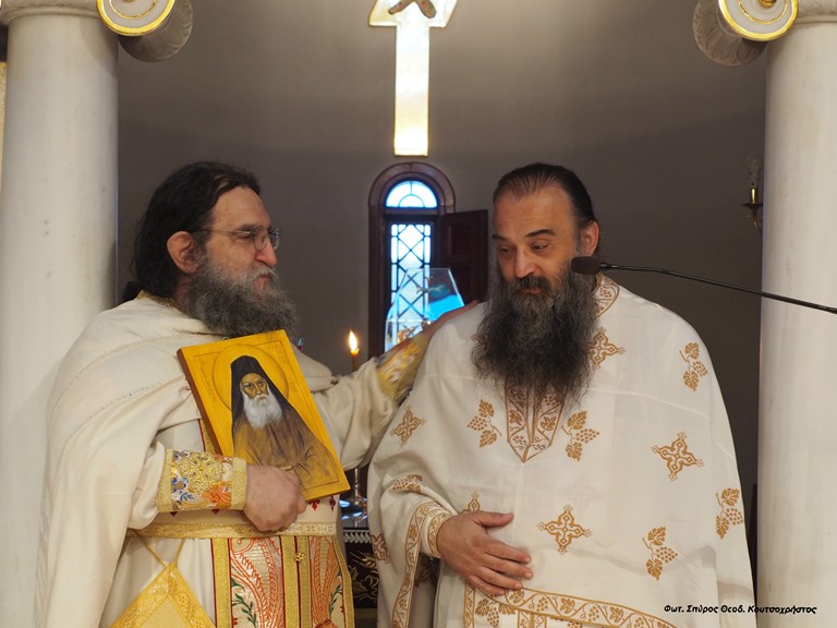 Ο π. Ευάγγελος μετέφερε με την χαρακτηριστική διήγηση του στους πιστούς, πνευματικές εμπειρίες από τον Άγιο Γέροντα, κρατώντας συνεχώς την εικόνα του.