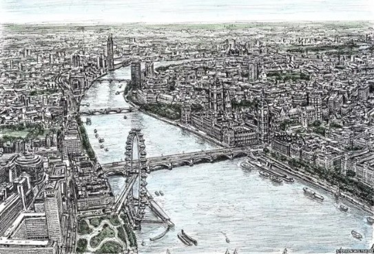 Αργότερα, άρχισε να ζωγραφίζει τα κτήρια που έβλεπε σε όλο το Λονδίνο με εντυπωσιακή λεπτομέρεια. Η μεγαλύτερη αδερφή του, Annette, τον έπαιρνε από το σχολείο και τον πήγαινε σε έναν φίλο που ζούσε στον 14ο όροφο ενός κτηρίου, έτσι μπορούσε να παρατηρεί την πόλη από ψηλά. Από τότε, ο ίδιος δηλώνει πως «το πάθος του έγινε εμμονή».